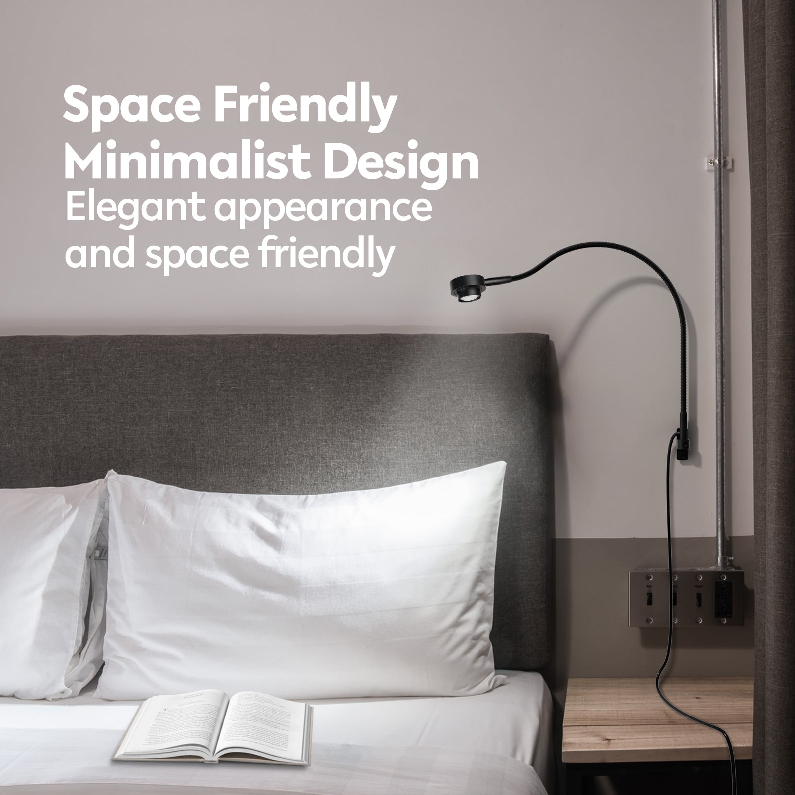 Space-Friendly Minimalist Design: This Bedside Lamp doesn't take up your headboard space, freeing up plenty of space for reading or tasks at hand. Its unobtrusive, clean line design blends seamlessly into your decor and provides an elegant aesthetic