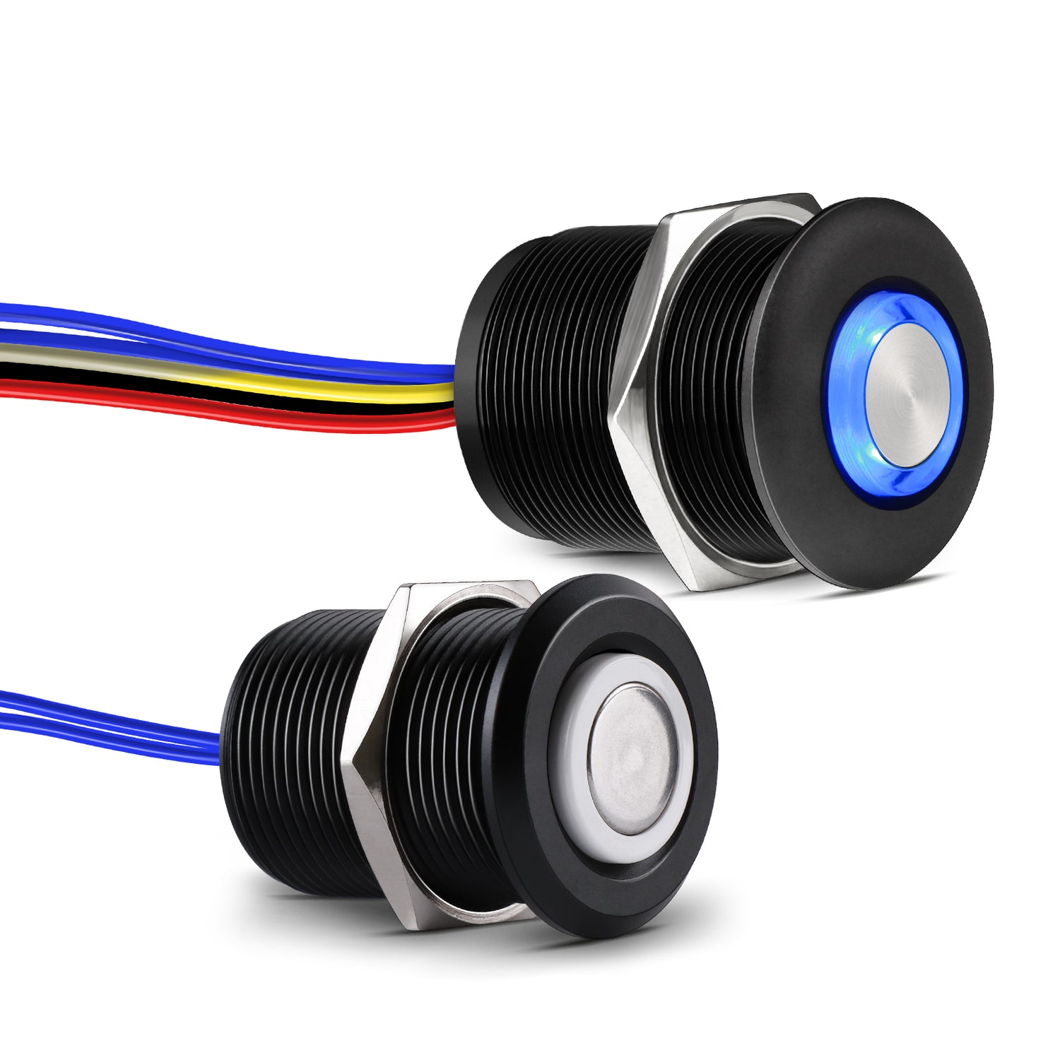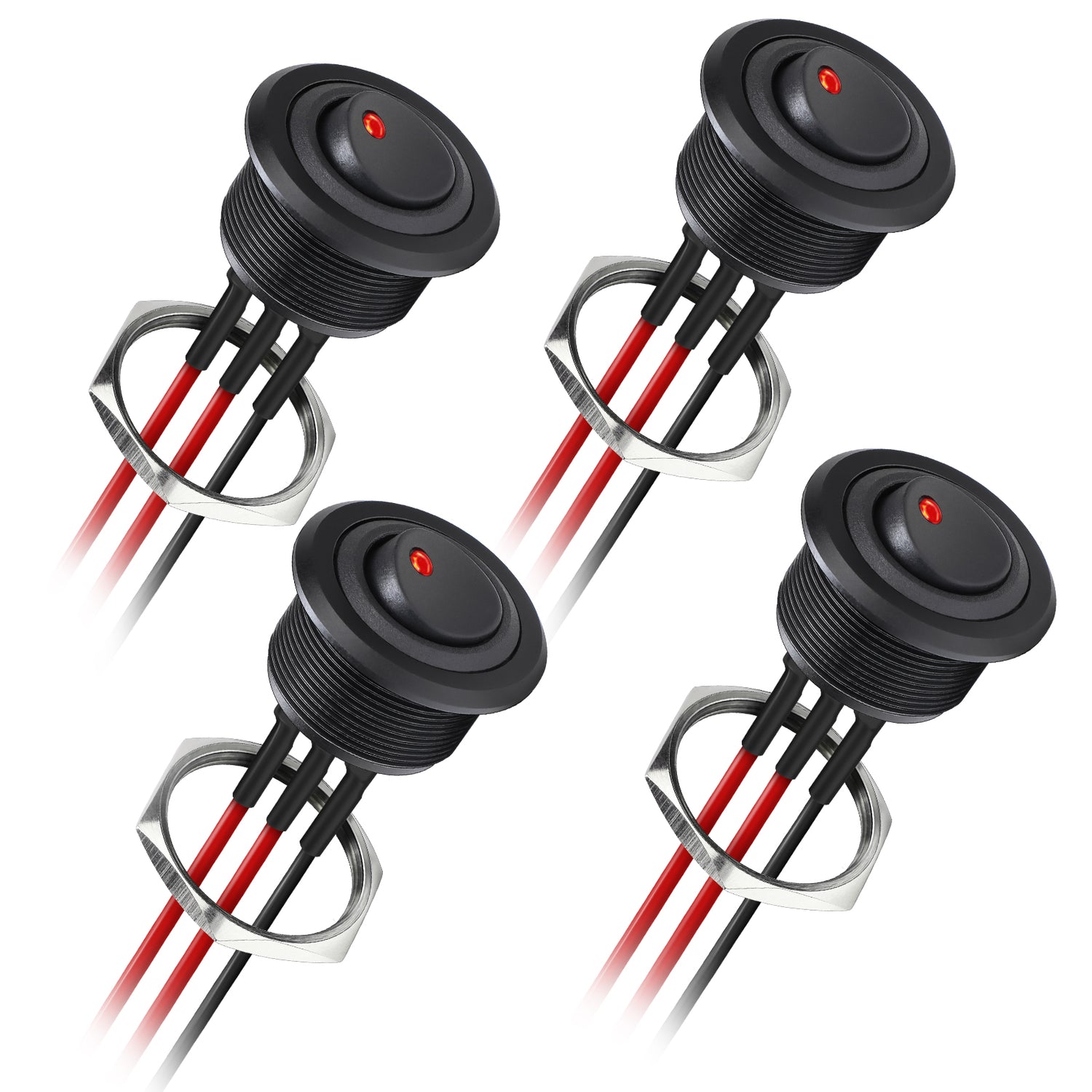 12V Dimmer Switch High Side, Push Button Dimmer for RV Boat Lighting & Led Strip Light, 6A Full Aluminum with Red Ring Light
