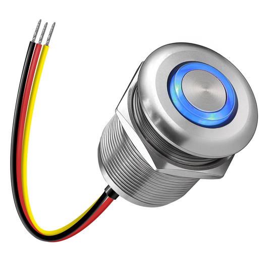 12V PWM Dimmer Switch Recessed Mount All Aluminum Push Button Dimming Switch, Blue Backlight 22mm Drill Hole 6A