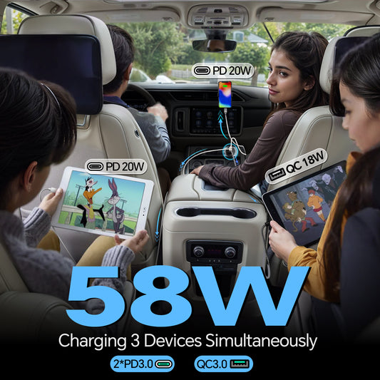 58W 12V USB Outlet Aluminum, Dual 20W PD3.0 18W QC3.0