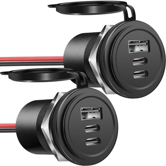 48W 12V USB Socket Outlet, USB C +USB A, Hole 1"(25mm)