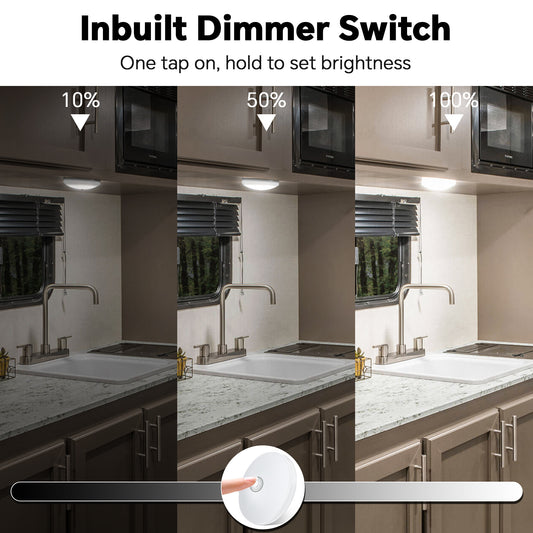 12V LED Ceiling Dome Light Dimmable RV Boat 3” Under Cabinet Down Light, Surface Mount Ceiling Light, Inbuilt Dimmer Switch & Blue Nightlight, CRI90 Chrome