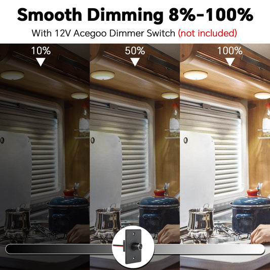 12V LED Ceiling Dome Light Dimmable, RV Boat Dome Light with Push On Off Dimming Switch, Surface Mount